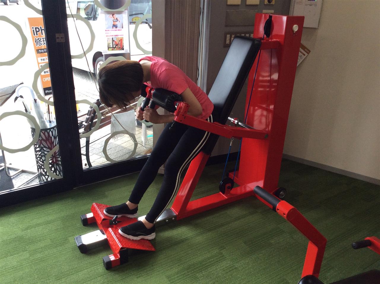 起き上がり訓✨腰に負担をかけることなく腹筋のトレーニングができます😃寝ている状態から起き上がる動作を腰に負担をかけないように予防改善するマシンです。