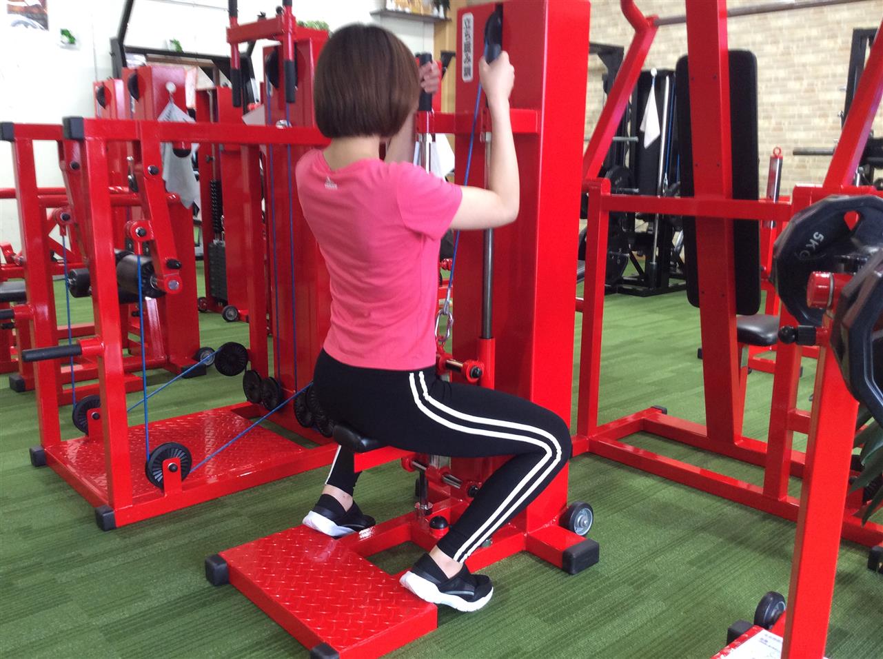 初動の負荷が少なく、ウエイトを調整するだけで上級者はもちろん初心者や女性、高齢者の方でも本格的にトレーニングすることができます。